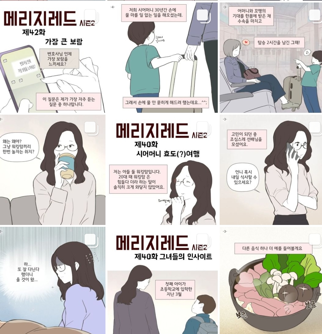드라마 굿파트너의 원작이 있다는 사실을 아셨나요? 원작 이름은 메리지레드로 실제 이혼 전문 변호사인 최유나 변호사의 인스타 웹툰이 원작입니다. 웹툰 원작과 드라마 간의 차이를 비교해보